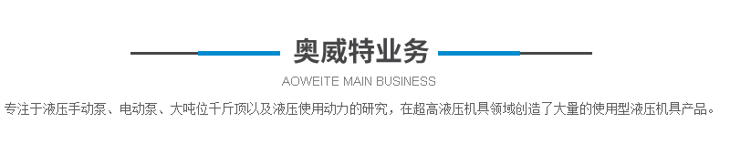 德州奧威特液壓機(jī)械有限公司有多年的超高壓元件及設(shè)備制造經(jīng)驗(yàn),依托德州精湛的制造工藝和不斷創(chuàng)新的技術(shù),專(zhuān)注于液壓手動(dòng)泵、電動(dòng)泵、大噸位千斤頂及拆裝科技以及液壓使用動(dòng)力的研究,在超高液壓機(jī)具領(lǐng)域不斷研發(fā),創(chuàng)造了大量的使用型液壓機(jī)具產(chǎn)品。